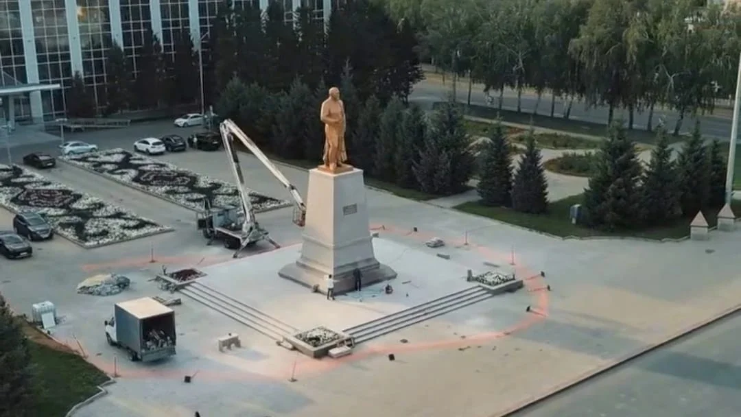 Абай ескерткіші жарқырай түсті: алтын түске боялып жатыр