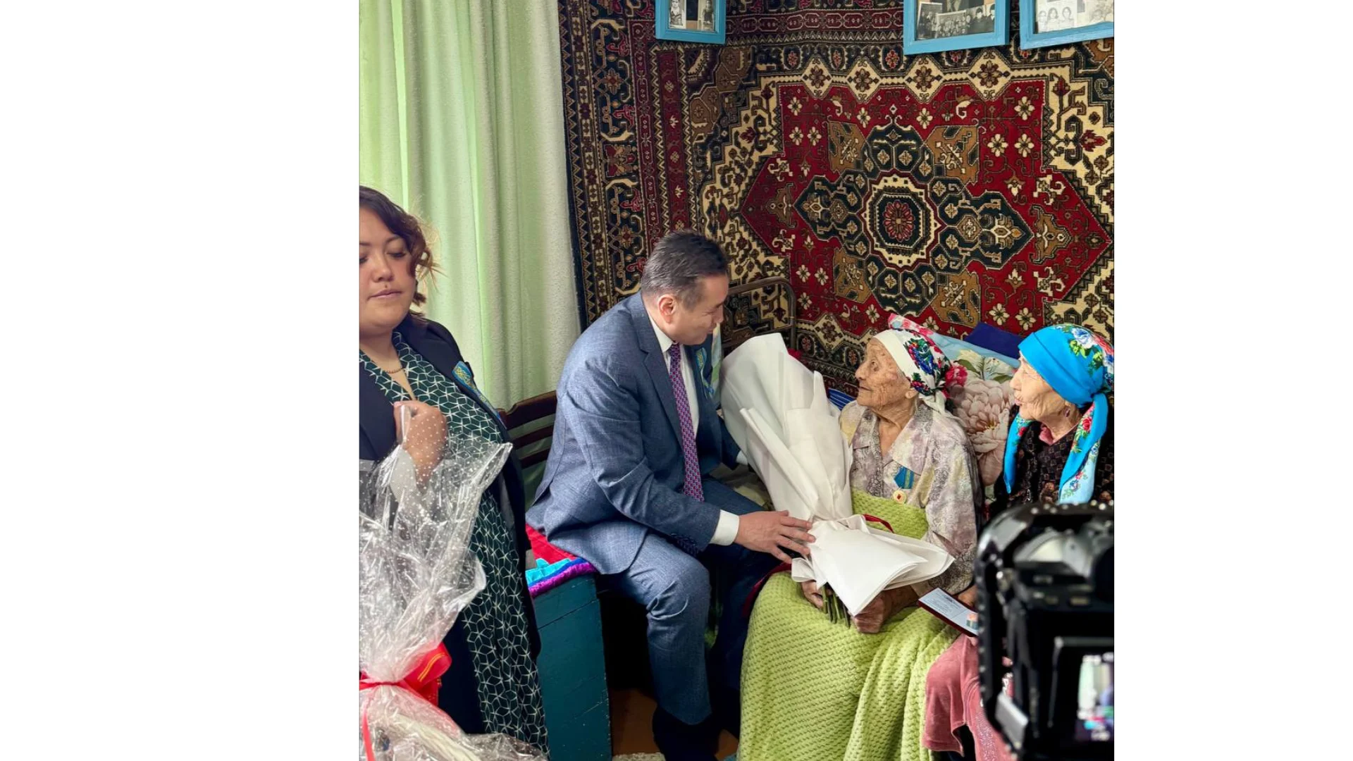 Сапар аясында облыс әкімі тыл ардагерлері Жетенева Кұрма мен Елизавета Бикбаеваға Қазақстан Республикасының Президенті Қасым-Жомарт Тоқаевтың «Ұлы Отан соғысындағы Жеңістің 80 жылдығы» мерейтойлық медалін табыстады. Аймақ басшысы өз сөзінде ұрпақ жадында сақталатын тарихи естеліктердің маңызын атап өтті.