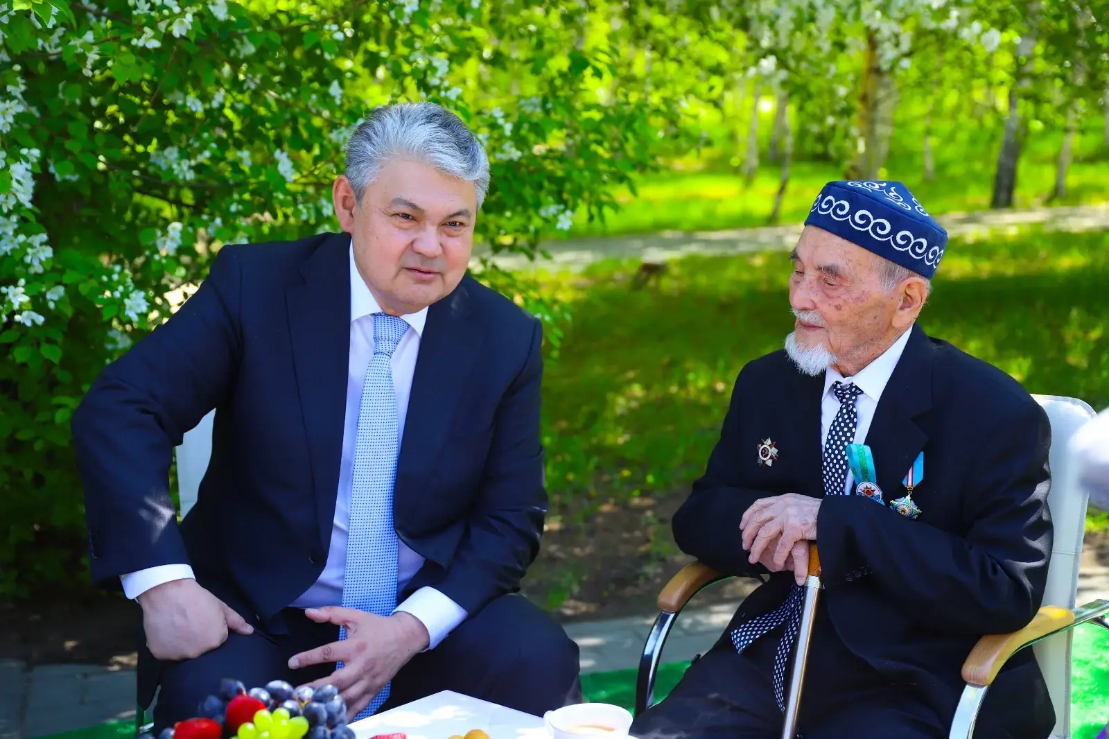 Бүгін бір мағыналы, ерекше кездесу болды. Қарияларымыз өткенді еске ала отырып жас ұрпаққа өнеге болар тағылымды әңгіме өрбітті. Біз соғыс және тыл ардагерлерін ешқашан бөле жармаймыз. Олардың бәрі де Жеңіс үшін өлшеусіз үлес қосты. Ардагерлеріміздің ерлі мен еңбегі бүгінгі ұрпаққа өнеге, – деп атап өткен өңір басшысы Ермек Көшербаев қазына кеуде қарияларымызға ел Президенті Қасым-Жомарт Тоқаевтың атынан құтықтау хат табыс етті.
