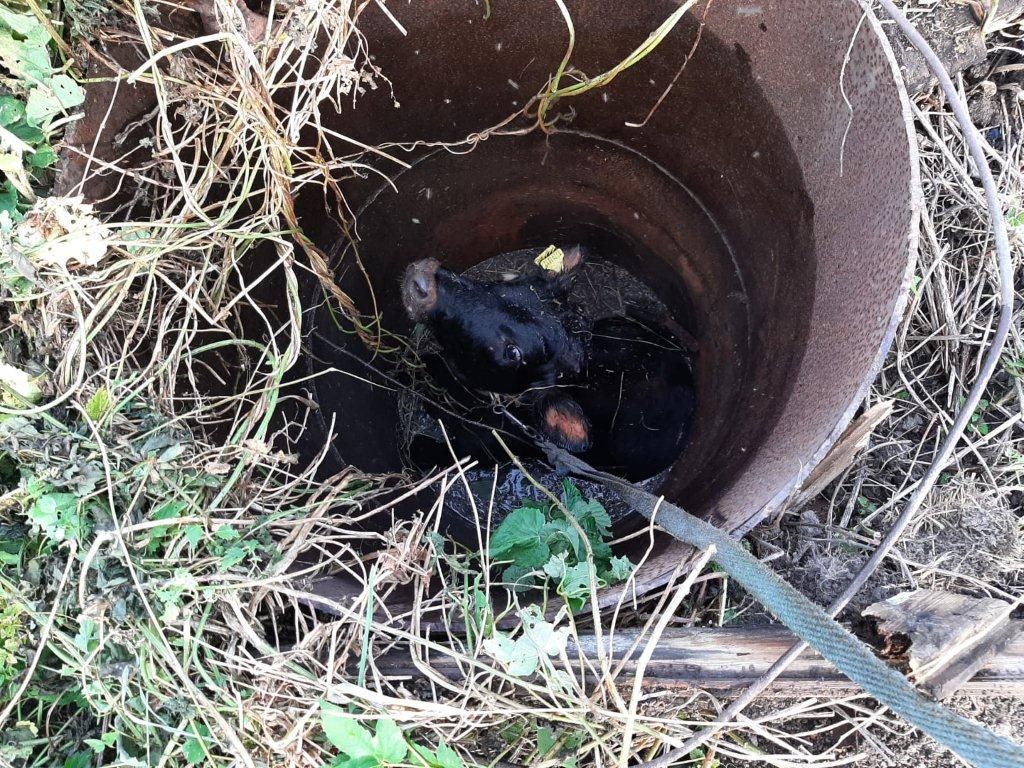 Риддерде бұзау құдыққа түсіп қалды
