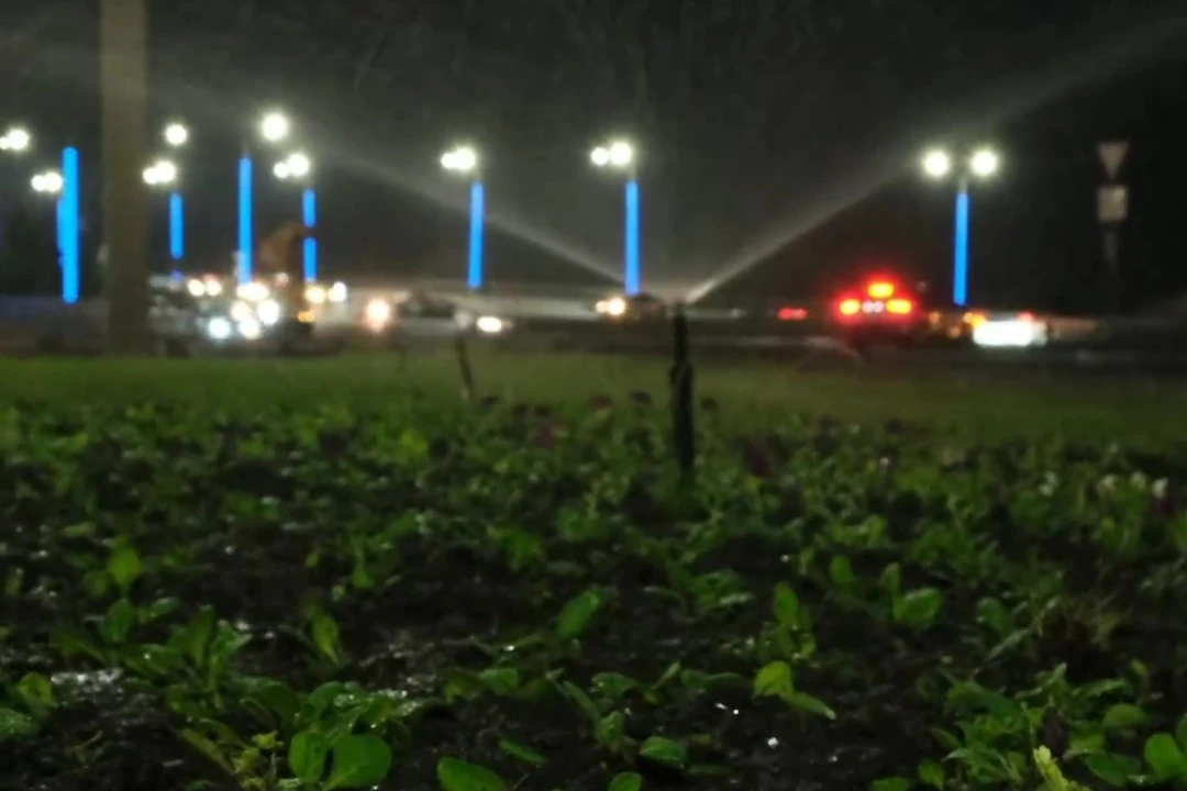 Автоматические системы полива включают ночью в Усть-Каменогорске (видео)