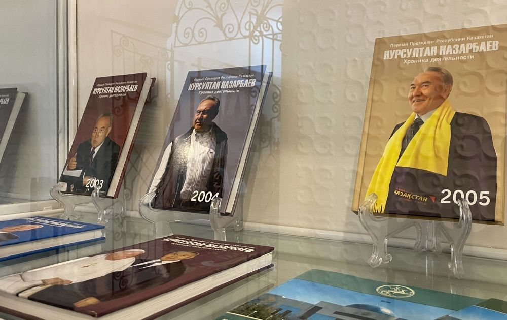 Подробно об экспонатах выставки рассказала экскурсовод областного музея-заповедника Гульбакыт Балтабекова. По ее словам, экспозиция богата литературой казахстанских обществоведов, а также трудами самого Елбасы. Среди экспонатов примечательна книга Ермухамета Ертысбаева «Казахстан и Назарбаев: логика перемен», повествующая о биографии Первого Президента страны – его детстве, юности, деятельности в аппарате ЦК КПСС, политической позиции в период перестройки, а также периоде президентства. Дополняет ряд литература о независимом Казахстане, хронике деятельности Нурсултана Назарбаева по годам, наградах Елбасы. На выставке представлены книги, написанные Первым Президентом Казахстана, в том числе «Казахстанский путь», «В сердце Евразии», «В потоке истории», которые рассказывают о трудных и ярких моментах, изменениях и событиях, произошедших в истории страны, казахского народа.