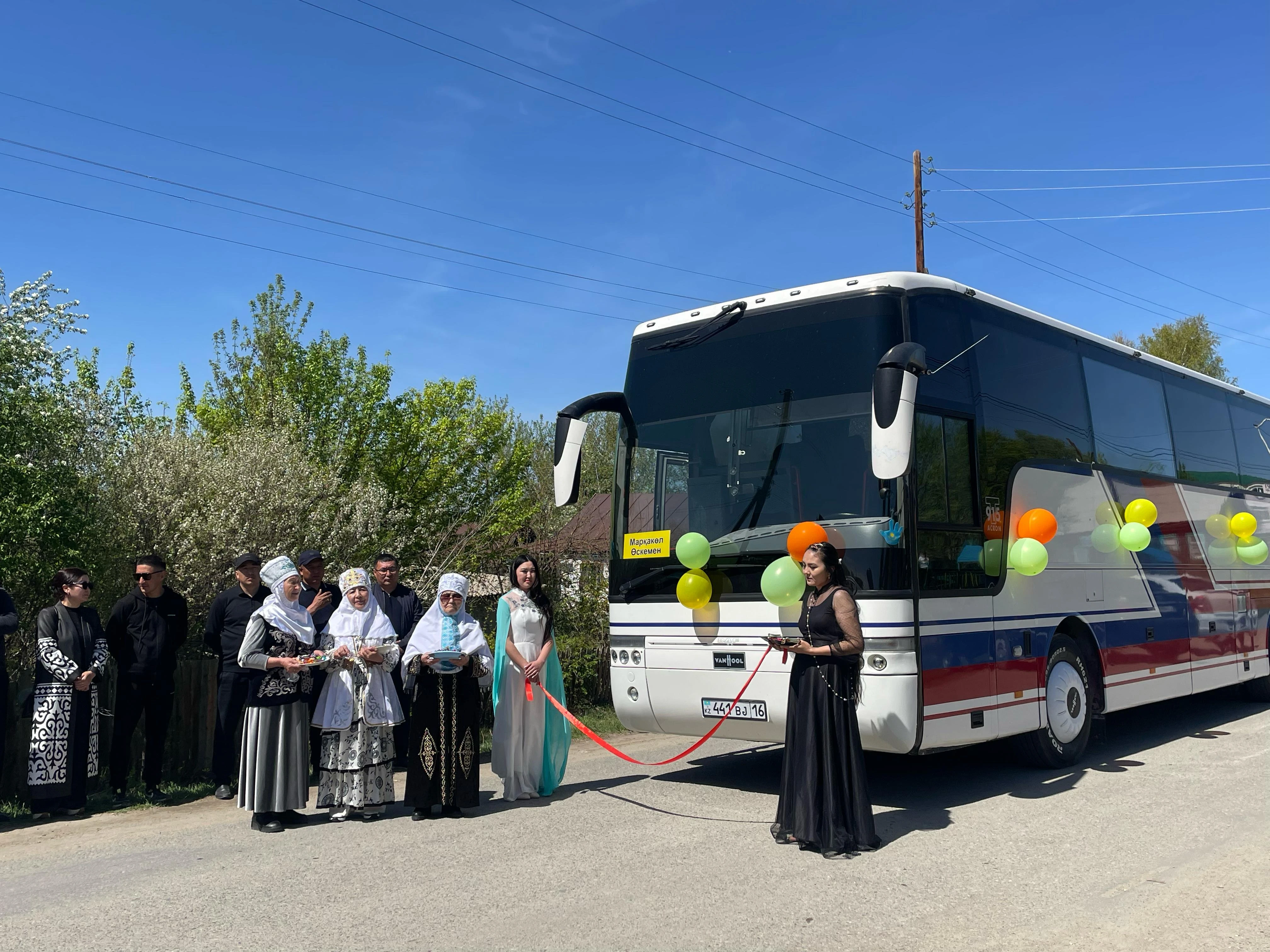 Аким района Кемешев Рүстембек Набиолдаевич и председатель районного маслихата Калелов Мамырбек Жалимханович поприветствовали пассажиров, старейшины села дали благословение, были розданы угощения.
