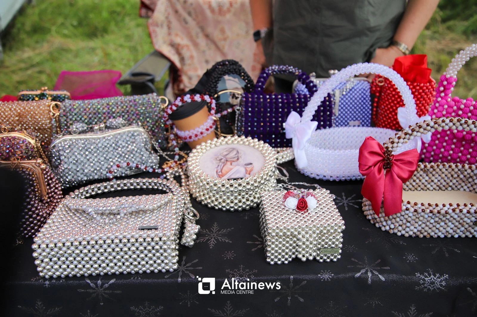 Параллельно с концертной программой на фестивальной площадке работает ярмарка. В этом году свою продукцию представили более 50 ремесленников. Помимо изделий декоративно-прикладного искусства, гостей радуют свежей продукцией - медом, курагой, куртом, домашней выпечкой.