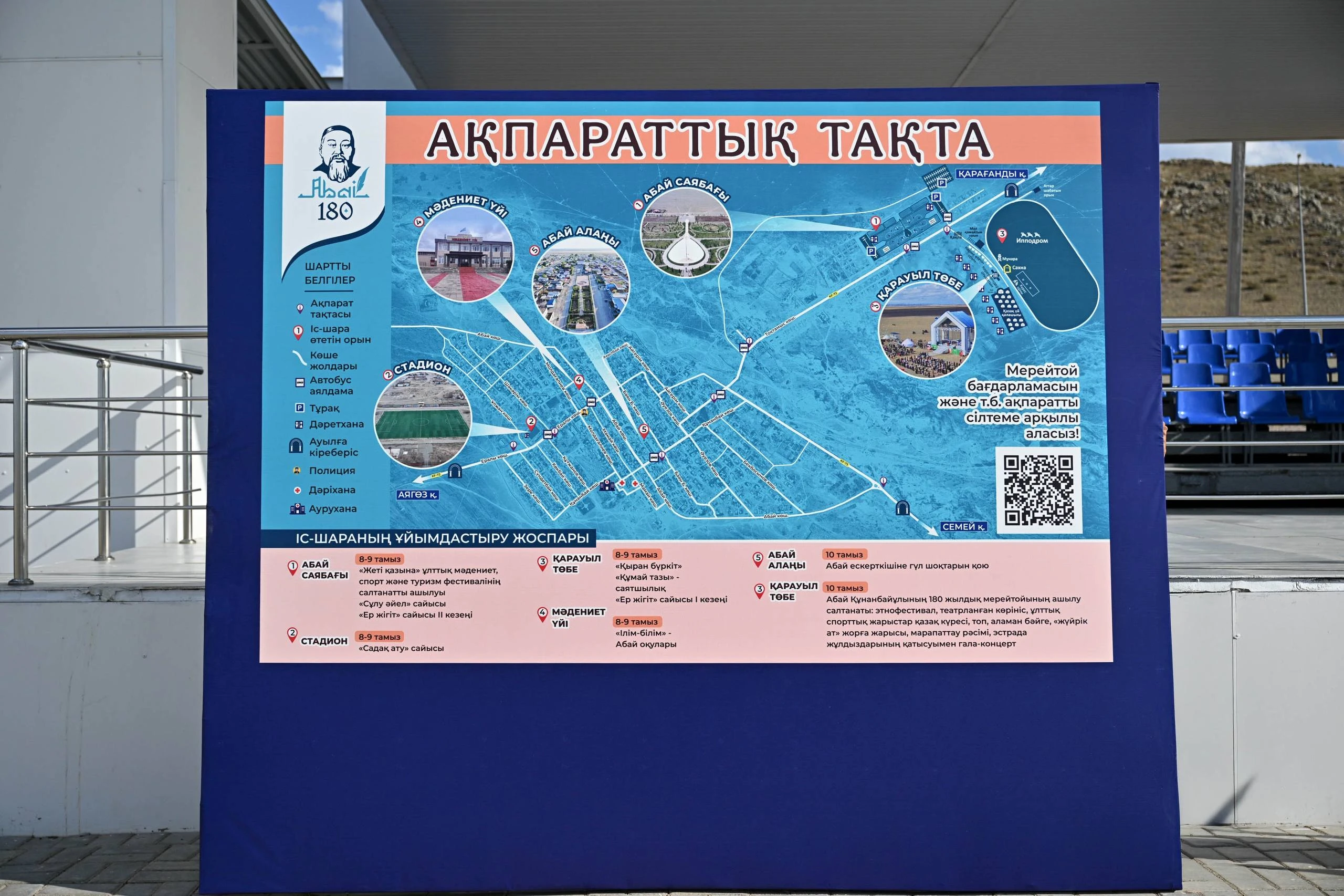 Одним из ключевых мест проведения юбилейных мероприятий станет Карауылтөбе, расположенное недалеко от села Караул Абайского района. Аким области Берик Уали на месте рассказал о ходе подготовки. Здесь предусмотрены большая степная сцена на 400 зрителей, круг для конных скачек, этноаул из юрт, торговая зона площадью 2500 кв. метров для предпринимателей, а также система освещения, водоснабжения, канализации и санитарная инфраструктура. В настоящее время ведется строительство дополнительных подъездных дорог.